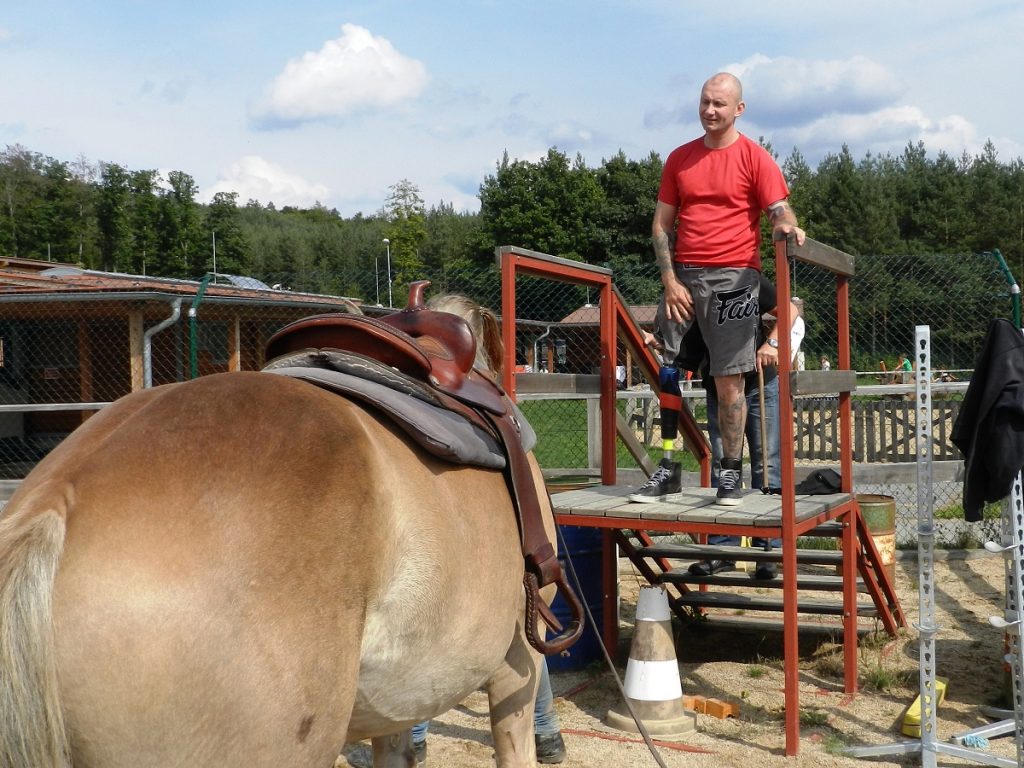 A tak si všichni přítomní mohli zkusit, jaký je pohled z koňského hřbetu. A že to není jen taková legrace, ale že se musí zapojit dost svalů, aby se člověk na koni udržel a dokázal se přizpůsobit jeho chodu. A jaký je to hřejivý pocit, když nakonec zase stojíte na zemi a do výšky hledíte na to velké zvíře a můžete si říct – „Já to dokázal“.